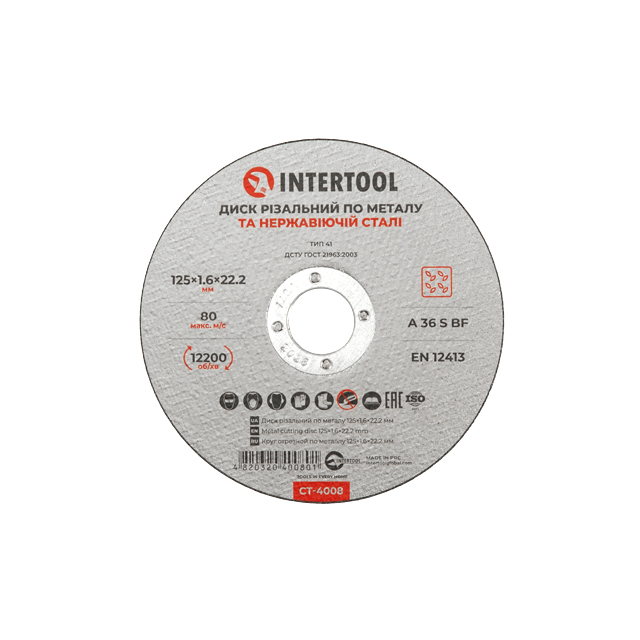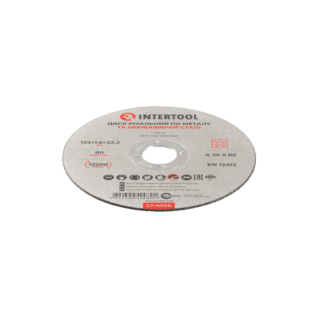 Диск відрізний по металу, 125×1,6×22,2 мм, 12200 об/хв