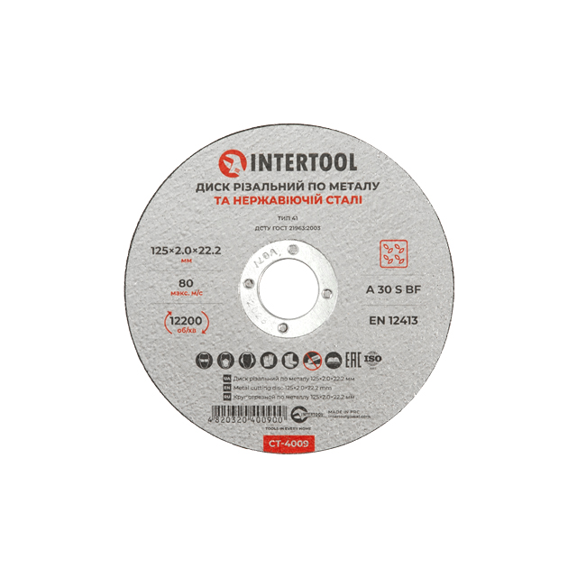 Диск відрізний по металу, 125×2,0×22,2 мм, 12200 об/хв
