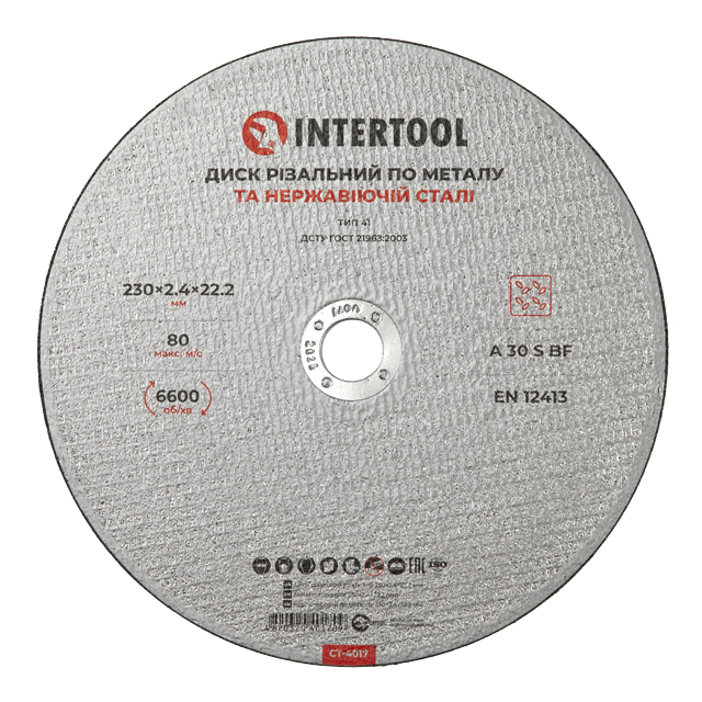 Диск відрізний по металу, 230×2,4×22,2 мм, 6600 об/хв