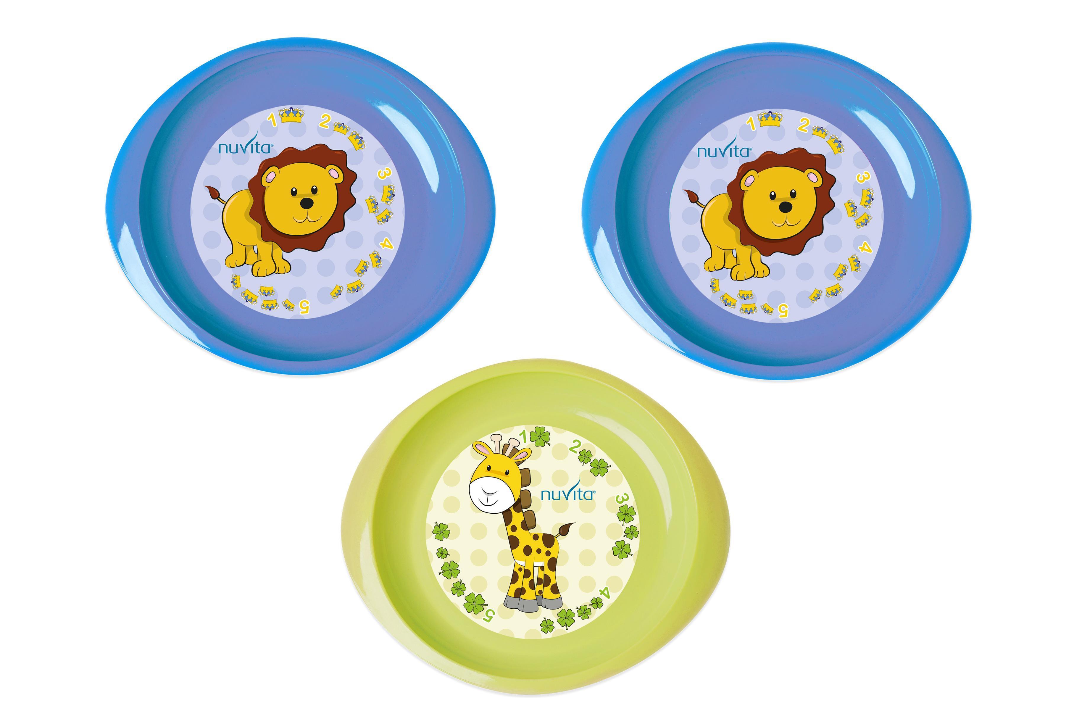 Дитяча тарілка Nuvita дрібна, 6міс+, 3шт, блакитний/салатовий