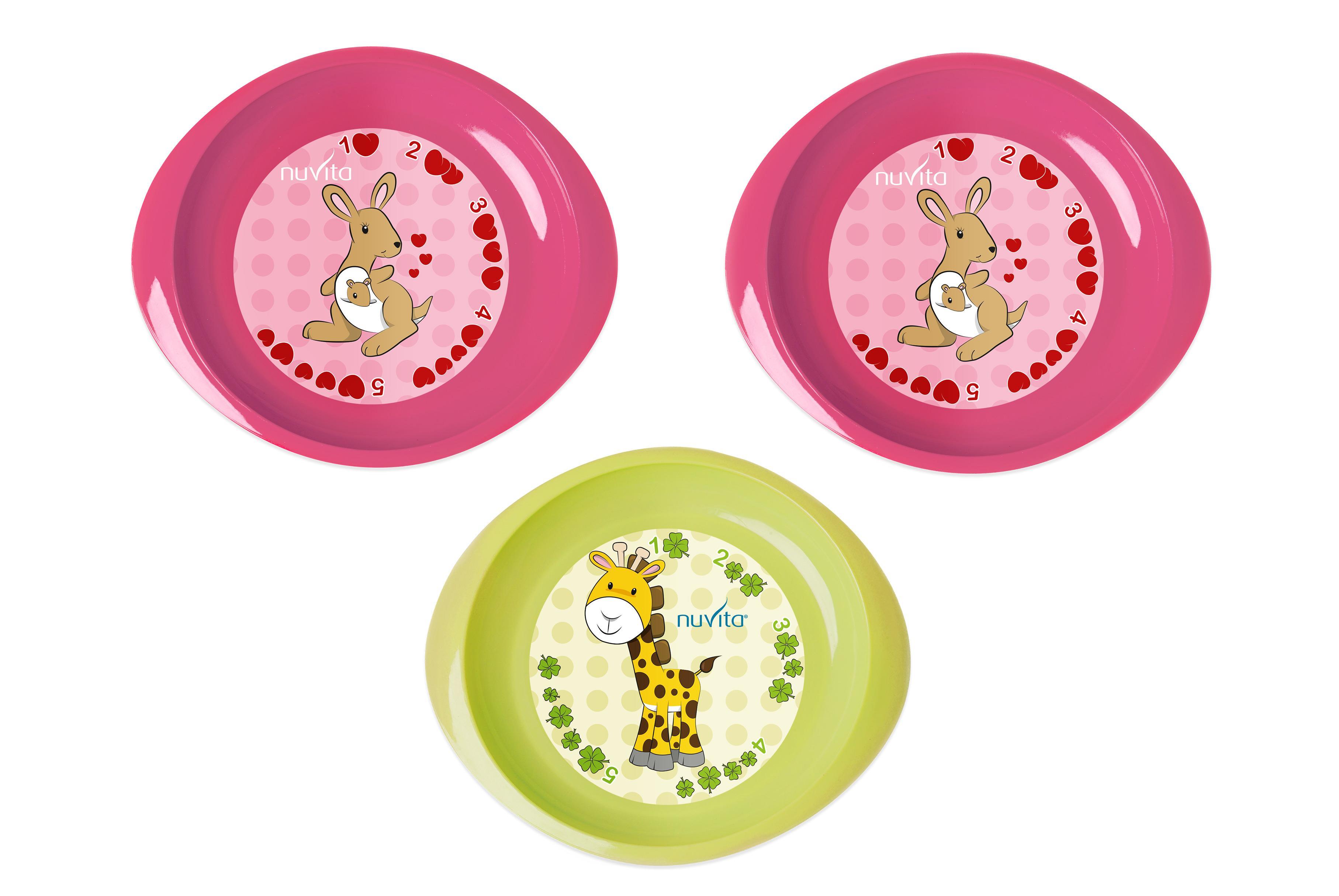 Дитяча тарілка Nuvita дрібна, 6міс+, 3шт, рожевий/салатовий