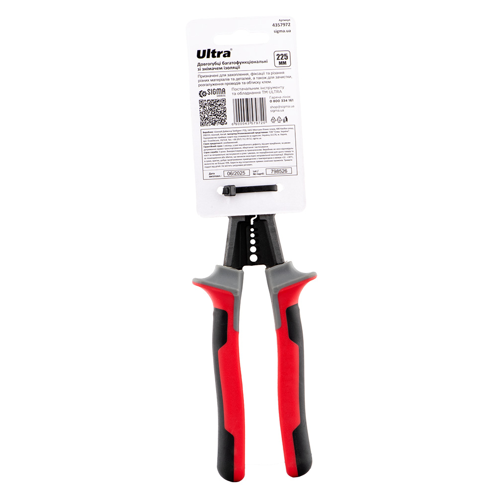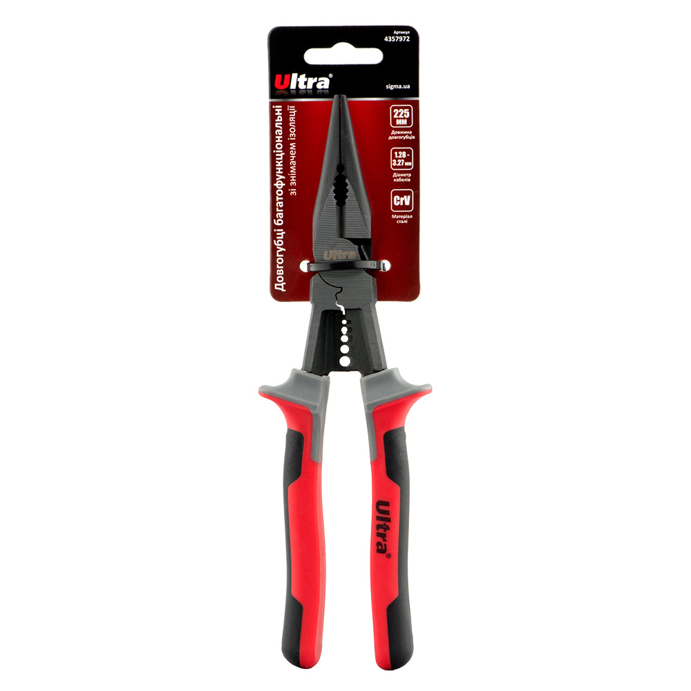 Довгогубці багатофункціональні зі знімачем ізоляції 225мм AWG 8, 10, 12, 14, 16 (1.28-3.27мм) CrV ULTRA (4357972) призначені для захоплення, фіксації та різання різних матеріалів і деталей, а також для зачищення, розчищення, розчищення, розчищення.