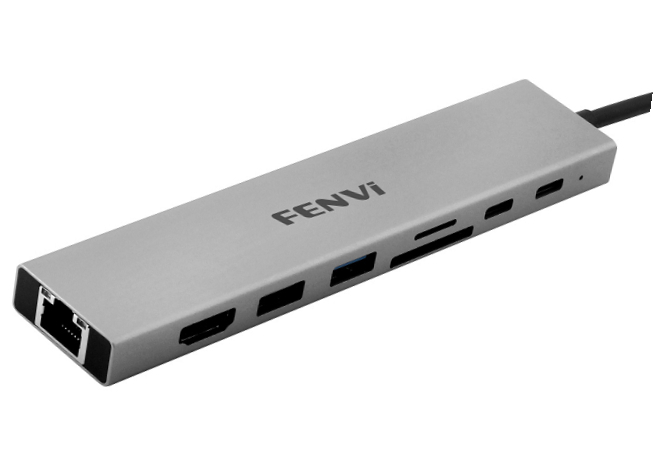 У цьому універсальному концентраторі FENVI F-C801H Type-C є все необхідне для розширення можливостей вашого пристрою. Завдяки HDMI 2.0, 1 порт USB 3.0, 1 порт USB 2.0, зарядці PD, передачею даних, слотам для карток SD і TF і Ethernet, та порту Type-C для передачі даних, ви можете легко підключатися до кількох периферійних пристроїв і насолоджуватися швидкою та стабільною швидкістю передачі даних і заряджання.