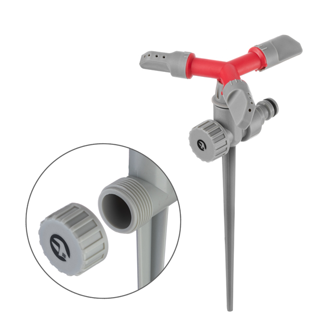 Розпилювач виготовлений з міцного ABS-пластику та поліпропілену, а металевий кілок забезпечує надійну та стабільну роботу зі зрошення. Його легко переносити з місця на місце та стаціонарно встановлювати на необхідній ділянці. Зручна форма ніжки-кілка дозволяє надійно зафіксувати його у ґрунті.