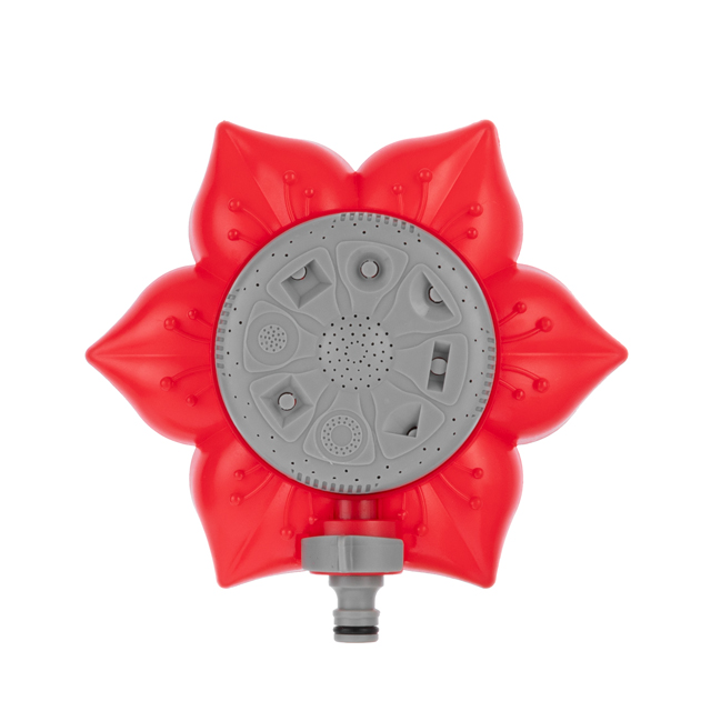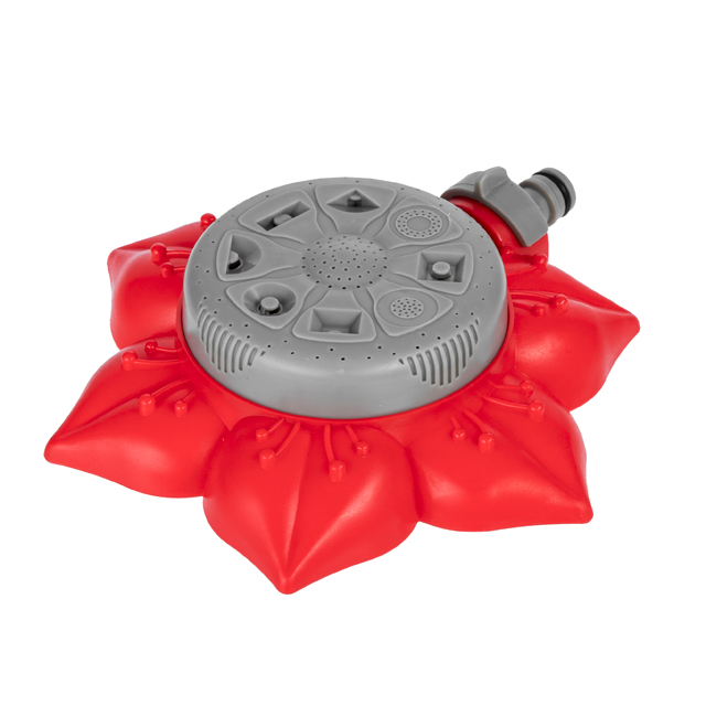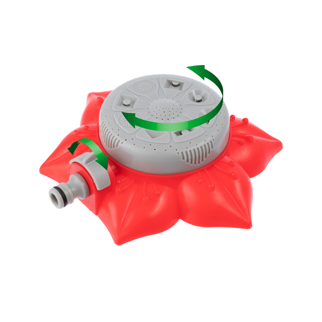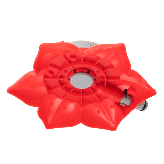 Розпилювач виконаний з ударостійкого ABS-пластику, що розміщується на стійкій широкій основі у вигляді квітки. Основа виготовлена з легкого та міцного поліпропілену, завдяки широкій базі, стійко стоїть на газоні та ґрунті. Розпилювач легко переносити з місця на місце та стаціонарно встановлювати на необхідній ділянці. Підключається до шланга за допомогою універсального адаптера 1/2".