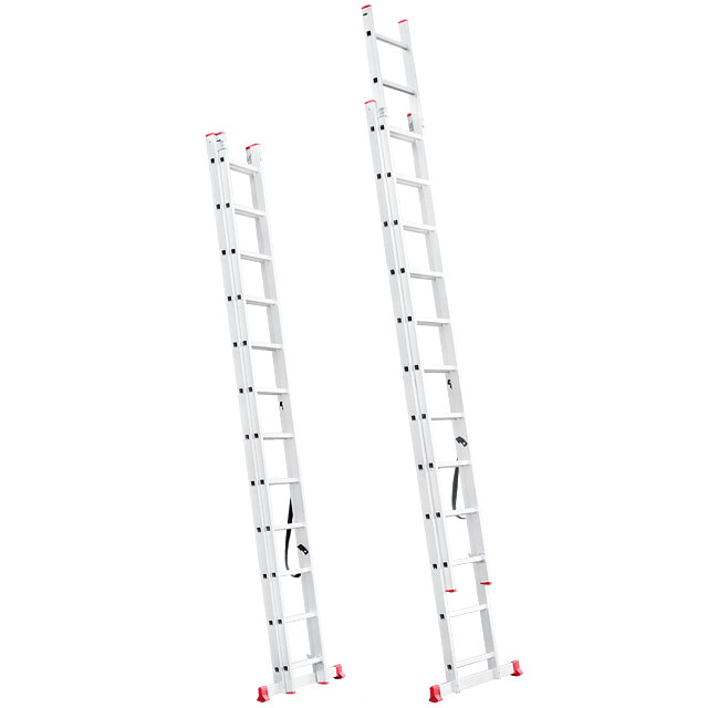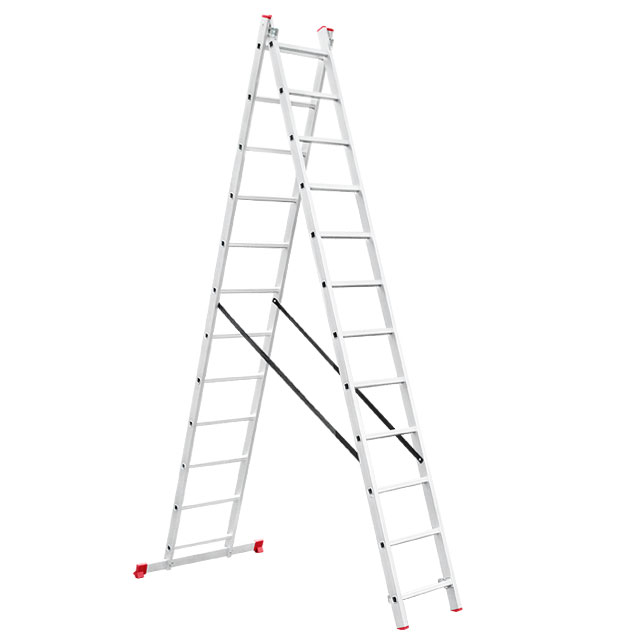 Складана двосекційна драбина стане у пригоді в будь-якій ситуації як професійним майстрам для роботи на висоті, так і для побутових потреб, а також працівникам складів, магазинів тощо. Драбина універсальна і підходить під будь-які завдання, максимальна висота становить 5,9 метрів, при цьому сходи можуть трансформуватися в будь-яке з трьох положень. Вона зручна для використання в домашньому господарстві, наприклад, замінити лампочки, пофарбувати стіни, помити вікна, також її можна використовувати як сходи на дах та ін.