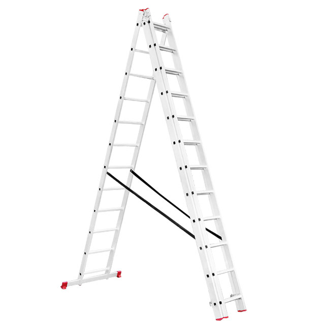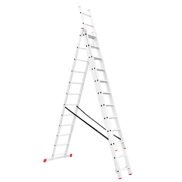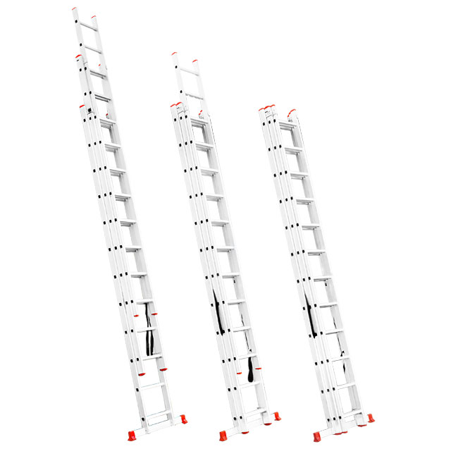 Складана трисекційна драбина стане у пригоді в будь-якій ситуації як професійним майстрам для роботи на висоті, так і для побутових потреб, а також працівникам складів, магазинів тощо. Драбина універсальна і підходить під будь-які завдання, максимальна висота становить 7,89 метрів, при цьому сходи можуть трансформуватися в будь-яке з чотирьох положень. Вона зручна для використання в домашньому господарстві, наприклад, замінити лампочки, пофарбувати стіни, помити вікна, також її можна використовувати як сходи на дах та ін.