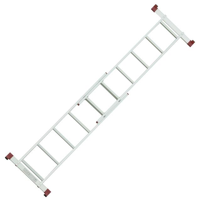 Будівельні сходи-поміст мають надійну, при цьому легку конструкцію з алюмінію. Працювати на них безпечно та зручно, оскільки мають широку платформу (1470*410 мм), вкриту антиковзким покриттям, яка фіксується на двох стійких приставних сходах, по 6 сходинок.