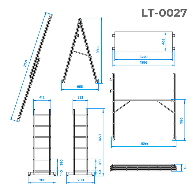 Сходи LT-0027 виготовлені з надміцного, легкого, стійкого до появи корозії алюмінієвого профілю. Драбина стійка та не ковзає по будь-яких поверхнях, завдяки надійним протиковзним ніжкам, вони також захищають меблі та підлогу від вм'ятин і подряпин. Рифлені сходинки не дадуть нозі зіслизнути під час роботи. Модель розрахована на тривалий строк експлуатації та відповідає європейському стандарту якості EN131.