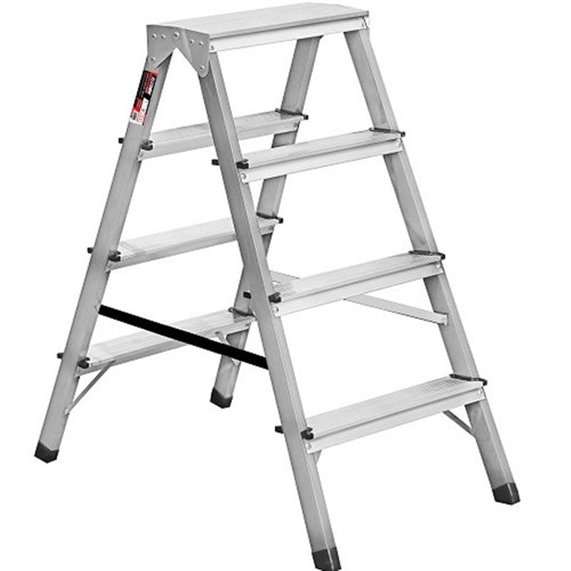 Stark SDHR404 – двостороння алюмінієва стрем’янка висотою 86 см для побутового та професійного використання. Стрем’янка виготовлена з міцного алюмінієвого профілю 40х20 мм товщиною 1 мм, що забезпечує безпеку користувача і дозволяє витримувати навантаження до 150 кг ваги. Stark SDHR404 складається з 4-х алюмінієвих сходів. Ребриста поверхня сходинки запобігає ковзання ноги для ще більшої безпеки. На ніжках передбачені пластикові накладки, які запобігають пошкодження поверхні. Для надійної фіксації на ніжках накладки закріплені заклепками. Характеристики драбини Stark SDHR404: Кількість сходинок – 4 шт.; Висота від підлоги до верхньої сходинки– 86 см; Висота в складеному стані – 94 см; Робоча висота – 300 см; Ширина сходинки – 46 див. Stark SDHR404 – компактна алюмінієва стрем’янка в якій сходинки розташовані з обох сторін, дозволить швидко прибрати в будинку, помити вікна, виконати ремонтні, монтажні та інші роботи.