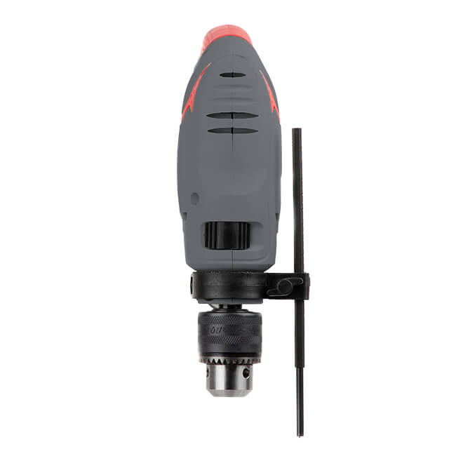 Потужність двигуна 550 Вт розвиває швидкість обертання до 2800 об/хв. - це дозволяє свердлити отвори у різних матеріалах: дерево – 20 мм, сталь – 10 мм, цегла – 13 мм. На дриль встановлений ключовий патрон, він надійно фіксує свердла з діаметром хвостовика від 1.5 до 13 мм та не дає їм прокручуватися навіть в ударному режимі.