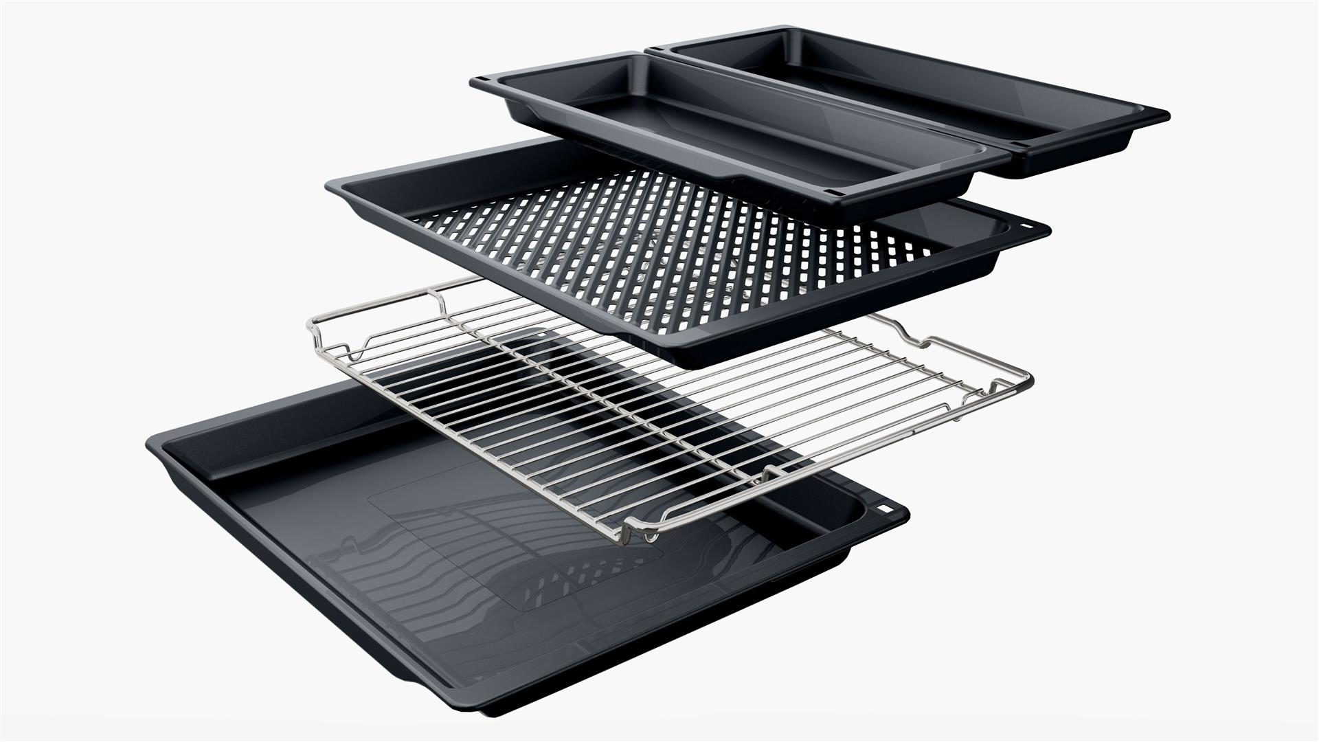 Духова шафа Bosch Serie 6 HJG852YB0T з 8 різними видами нагрівання та 30 автоматичними програмами приготування. Температура регулюється в діапазоні від 30°C до 275°C, а внутрішній об’єм шафи складає 76 літрів. Вона оснащена системою висувного механізму з 5 рівнями та дворівневими телескопічними напрямними з функцією фіксування.