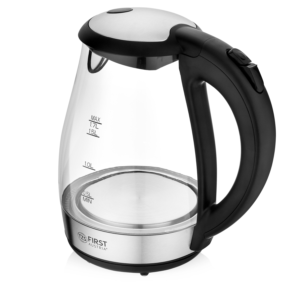 Електрочайник First FA-5405-8 представлений у форматі класичної конструкції, при якій важливе значення має зовнішній вигляд техніки. Вона зроблена зі стійкого до впливу температури скла та міцного пластику, має нейтральне оформлення без яскравих елементів та ергономічну систему управління з простими регуляторами механічного типу. Прозоре скло у поєднанні з чорним кольором дає найкращий варіант для впровадження у будь-який дизайн.