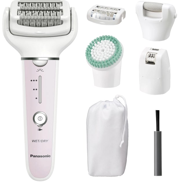 Дизайн епілятора поєднує в собі зручну ручку та гнучку на 90° голівку, що дає змогу набагато швидше видаляти волосся на тілі — навіть в зоні бікіні та пахв. Завдяки оснащенню усіма насадками, які вам коли-небудь знадобляться, епілятор забезпечує комплексний догляд за всім тілом. ПОДВІЙНИЙ ДИСК – ПОДВІЙНИЙ ЕФЕКТ Епіляційна голівка з двох дисків Panasonic робить епіляцію більш швидкою та ефективною. У той час як перший диск захоплює більшу частину волосся, другий диск висмикує волоски, пропущені першим. Таким чином ваша шкіра буде шовковистою та гладенькою лише за один рух. ВИДАЛЯЄ ВОЛОССЯ ДОВЖИНОЮ 0,5 ММ Ефективна епіляція означає захоплення волосся будь-якої товщини та довжини одночасно. Завдяки оптимізованій ширині пінцетів епілятор Panasonic серії EY захоплює навіть коротке волосся довжиною 0,5 мм, яке неможливо видалити за допомогою воскової епіляції. ДАТЧИК ТИСКУ ДЛЯ КОМФОРТНОЇ ЕПІЛЯЦІЇ Епілятор оснащений світлодіодним підсвічуванням. Якщо ви натискаєте на шкіру надто сильно, світлодіодний індикатор блиматиме, сповіщаючи про це та допомагаючи обрати відповідну силу тиску для комфортної епіляції та рівномірного результату. Світлодіодне підсвічування також гарантує, що ви не пропустите жодної волосинки у важкодоступних місцях. ЗРУЧНА РУЧКА Завдяки тонкій ручці ви можете насолоджуватися комфортною епіляцією. Зручний дизайн корпусу робить видалення волосся швидшим, а керування простішим. У ВАШОМУ ТЕМПІ Виберіть налаштування швидкості, яке вам підходить. Епілятор пропонує м’який, нормальний і потужний режими, щоб задовольнити потреби будь-якої шкіри та чутливості. ГНУЧКА ПЛАВАЮЧА ГОЛІВКА Гнучка голівка епілятора може рухатися на 90°. Вона чітко повторює кожен вигин і переміщується по різних контурах тіла, досконало видаляючи волосся на будь-якій ділянці. НАСАДКИ Цей набір для видалення волосся оснащений усіма насадками, які вам знадобляться, щоб зробити шкіру гладенькою. У набір епілятора входять епіляційні насадки для ніг і рук, для зони бікіні та пахв. Він також постачається з насадкою для делікатної епіляції Gentle Cap, насадкою для глубокого пілінгу та насадкою для догляду за стопами.