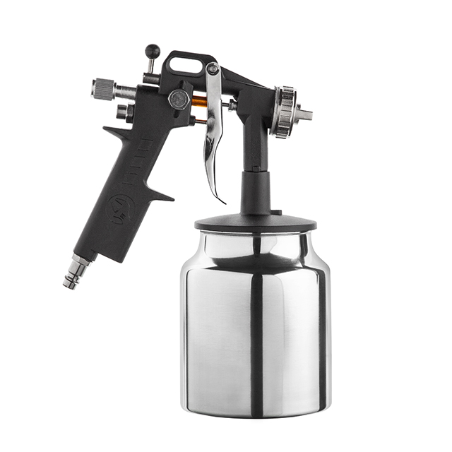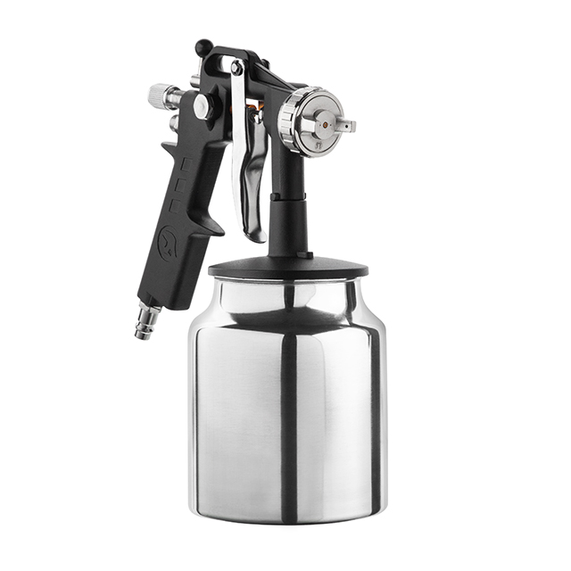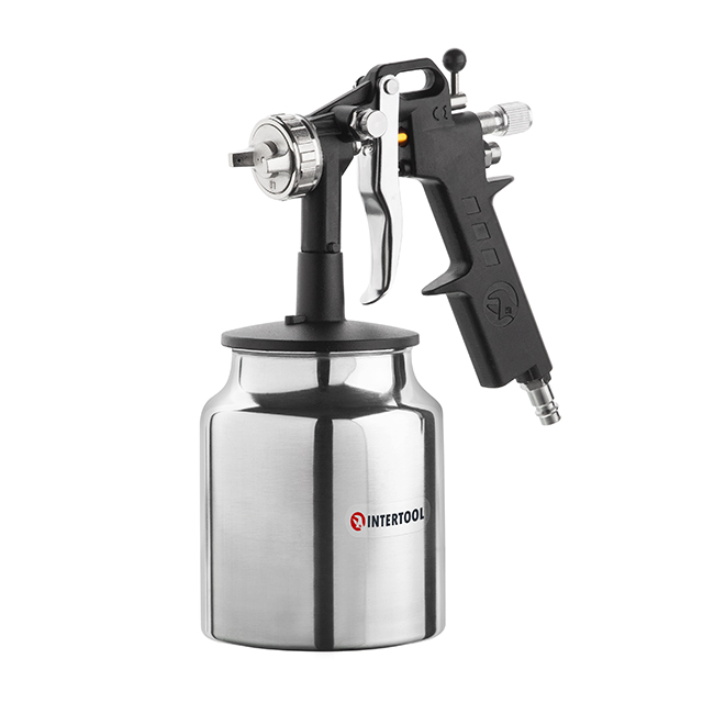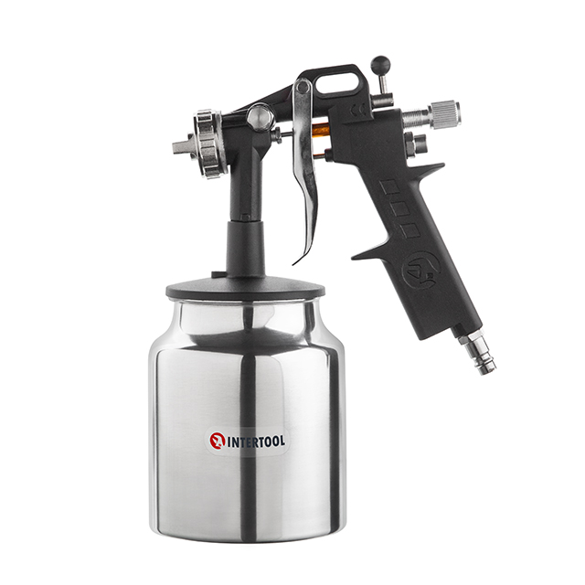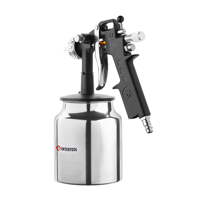 Металевий бачок з нижнім розташуванням міцний та довговічний може використовуватися для більш агресивних матеріалів. Зручний для фарбування стелі, навісних конструкцій тощо.