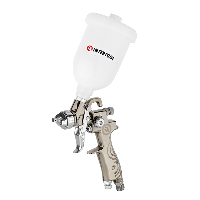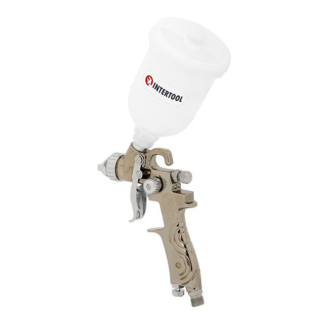 Оснащений пластиковим бачком об’ємом 250 мл, завдяки чому можна візуально контролювати рівень фарби, що дуже зручно. За потреби бачок можна замінити на PT-1903 або PT-1900.