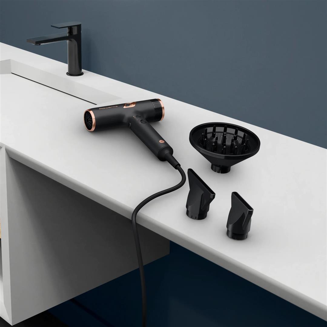 Компактний та ефективний Потужний та компактний фен Rowenta Maestria Nano підходить для швидкої та точної сушки волосся. Технологія Nano Завдяки технології Nano, потужність двигуна забезпечує швидкість повітряного потоку до 266 км/год, що дозволяє ефективно укладати волосся, уникаючи перегріву. Легка вага Фен важить лише 300 г, що робить його ідеальним для подорожей і тривалого використання без втоми. Насадки на будь-який випадок У комплекті передбачено насадки-концентратори (4 мм і 6 мм) та дифузор для створення об’єму і чітких локонів.
