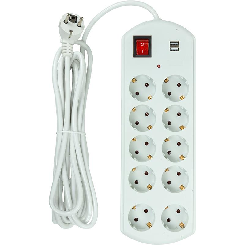 Мережевий фільтр на 10 розеток та 2 USB порти призначений для підключення широкого спектру комп’ютерної, побутової та електронної техніки до електричної мережі змінного струму з номінальною напругою не більше 250В та номінальним струмом не більше 10А. Кабель довжиною 5 м дозволить підключити техніку в місцях віддалених від стаціонарних розеток. Ізоляційний матеріал H05VV-F та провідники зі 100% міді гарантують високу стійкість до температур та механічних пошкоджень, а також максимальну електропровідність та стійкість до навантажень. Корпус мережевого фільтра виготовлений із вогнестійкого пластику. Фільтр оснащений універсальними розетками євростандарту із заземленням. Надійний та зручний подовжувач захистить електронну техніку від короткого замикання та перепадів напруги. Фільтр PowerPlant стане відмінним помічником у будинку, офісі або на дачі.