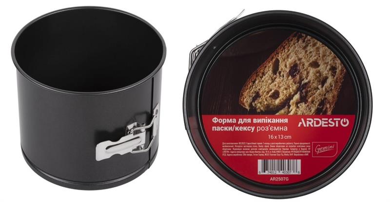 Форма для випікання паски/кекса Ardesto Gemini, 16х13см, вуглецева сталь, роз'ємна, кругла, сірий (AR2507G)