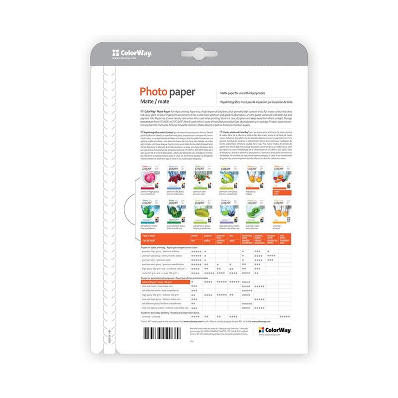Матовий папір ColorWay для струминного друку. Має високий ступінь білизни і матову рівну поверхню, забезпечує високий контраст, відсутність відблисків, відбитків пальців на нанесеному зображенні. Володіє широкою гамою кольорів і хорошим вбиранням чорнила.