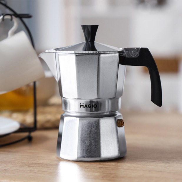 Класична кавоварка гейзера Magio відмінно підходить для приготування традиційного еспресо.