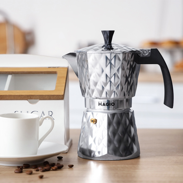 Класична гейзерна кавоварка Magio чудово підходить для приготування традиційного еспресо.