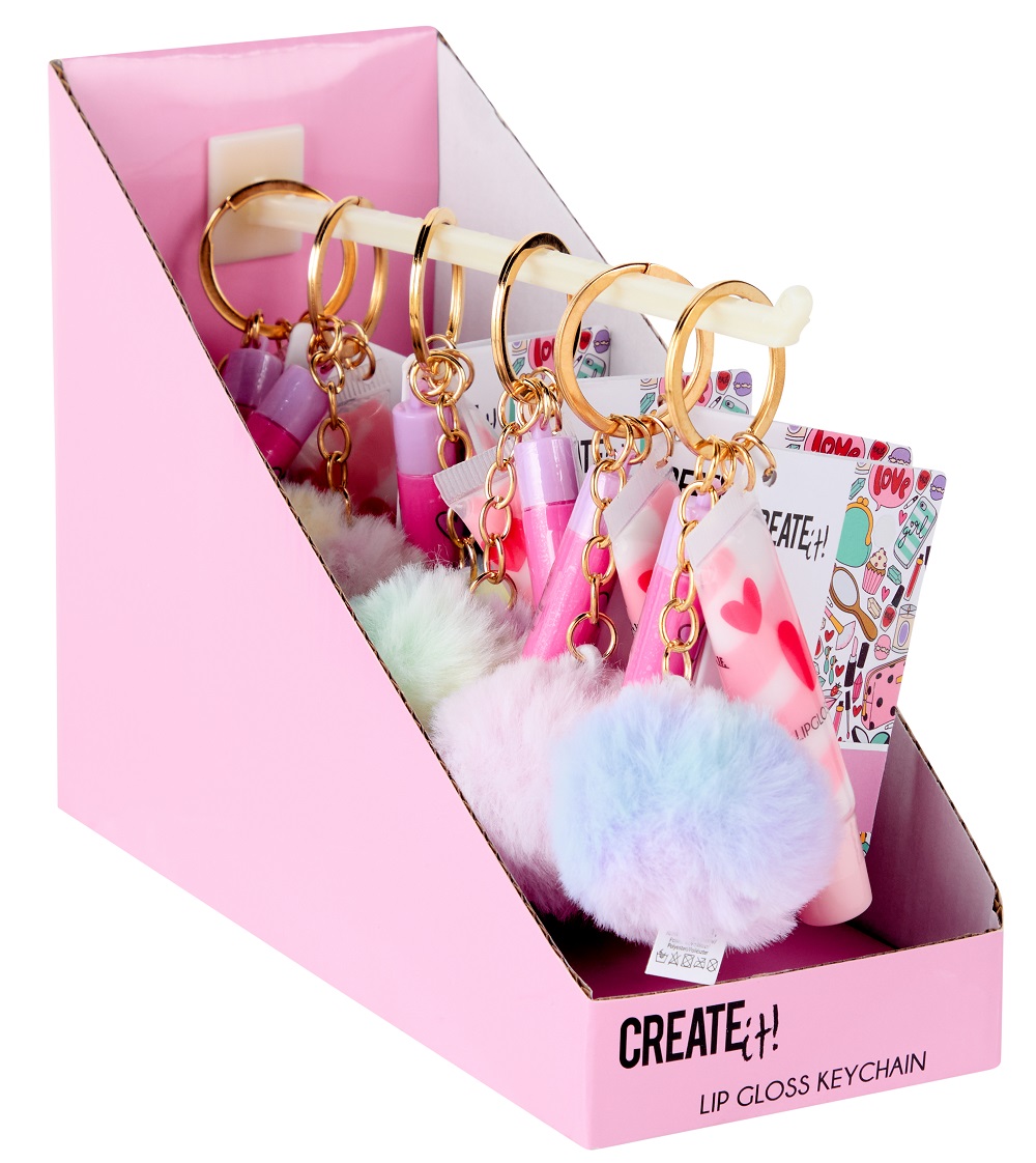 Набір складається з 2х блисків для губ на брелку з м'яким помпоном. Рекомендований вік: від 6 років. Розмір:7.5см x 9см x 11см. Дисплей: 6 шт. розмір: 2.02см x 8.2см x 14.7см.