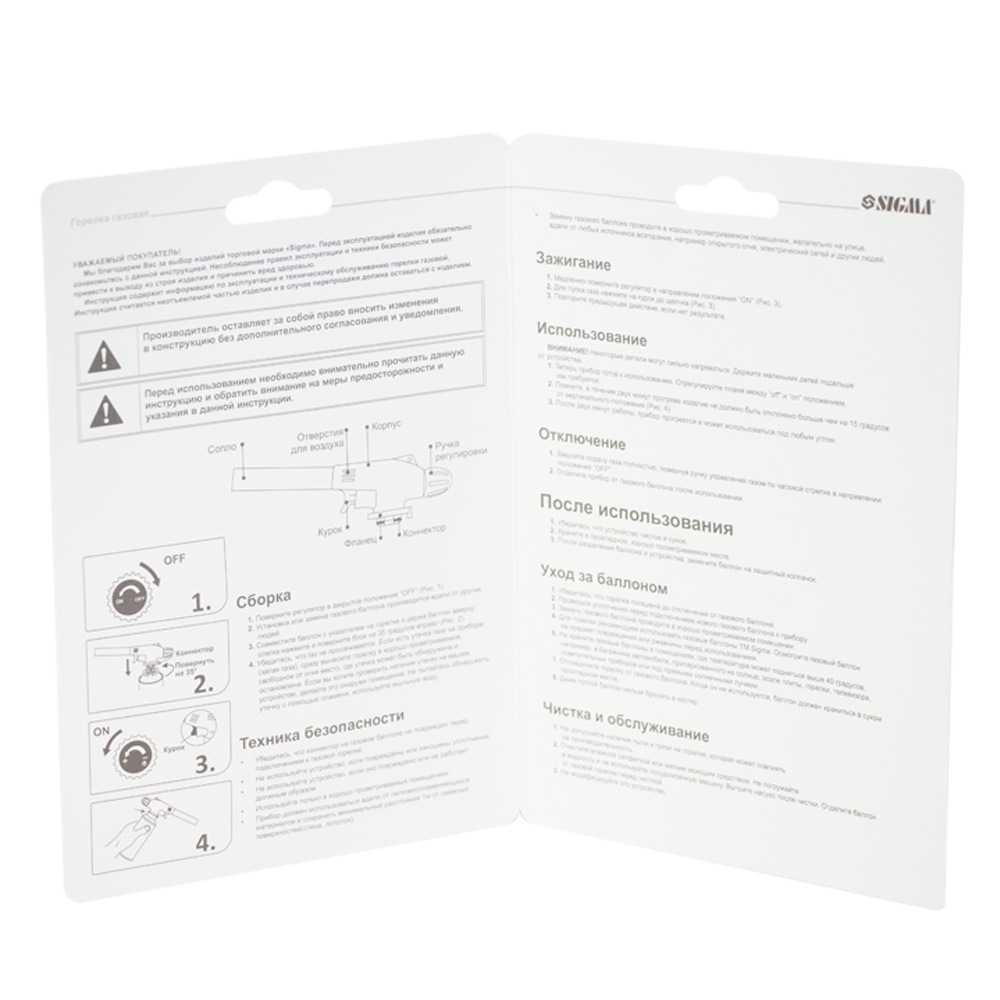 Пальник газовий з п'єзопідпалом Sigma (2901401) застосовується в побутових, ремонтних, будівельних та туристичних цілях. Наприклад, при карамелізації цукру на десертах, глазурування, надання кольору та текстури, підпалювання міцних напоїв. Також використовується для розпалювання дров та вугілля, відтавання труб, замків, підігріву автомобільних двигунів, випалення старої фарби, паяння мідних труб та виготовлення ювелірних виробів.