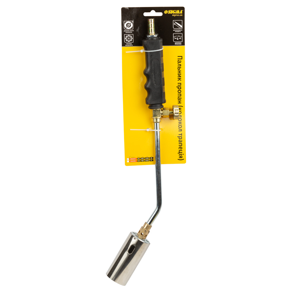 Пальник пропан Ø35 (дзвін трапеція) Sigma (2902031) призначений для паяння та випалювання різних поверхонь. Працює від багаторазових балонів 5, 12, 27, 50, 100 літрів (через шланг/редуктор). Для підключення пальника до балона можна використовувати шланг будь-якої довжини.