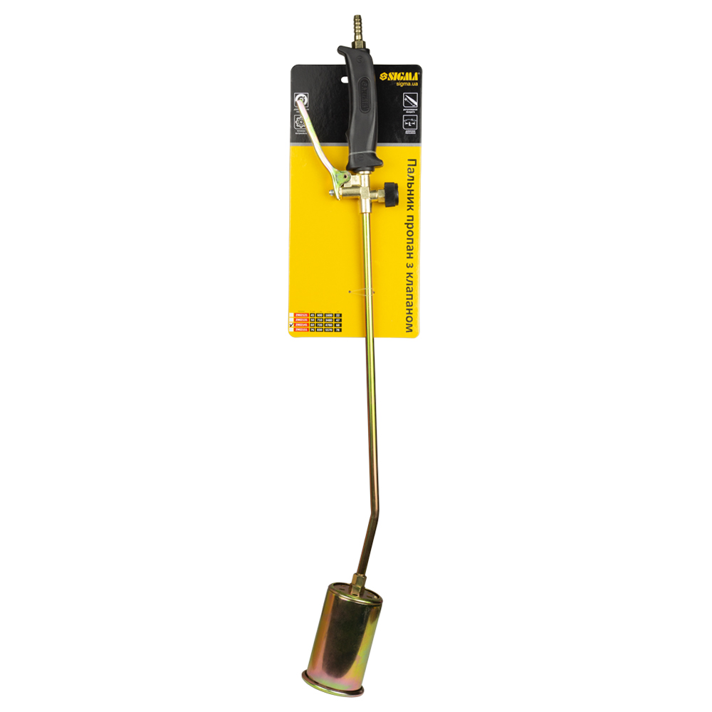 Пальник пропан Ø60 з клапаном Sigma (2902141) призначений для паяння та випалювання різних поверхонь. Працює від багаторазових балонів 5, 12, 27, 50, 100 літрів (через шланг/редуктор). Для підключення пальника до балона можна використовувати шланг будь-якої довжини.