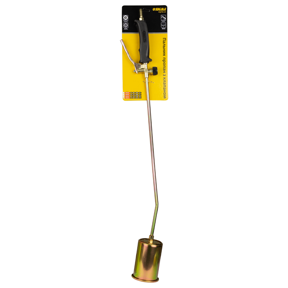 Пальник пропан Ø76 з клапаном Sigma (2902151) призначений для паяння та випалювання різних поверхонь. Працює від багаторазових балонів 5, 12, 27, 50, 100 літрів (через шланг/редуктор). Для підключення пальника до балона можна використовувати шланг будь-якої довжини.