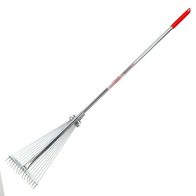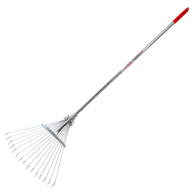 Дана модель граблів виготовлена з надійної високоякісної оцинкованої сталі, що надає пруткам додаткову міцність та стійкість проти корозії. Віялові граблі постачаються зі зручною металевою ручкою. Ширина віяла регулюється в діапазоні від 300 до 500 мм, що дозволяє налаштувати оптимальну ширину обробки, залежно від типу поверхні та забруднення.