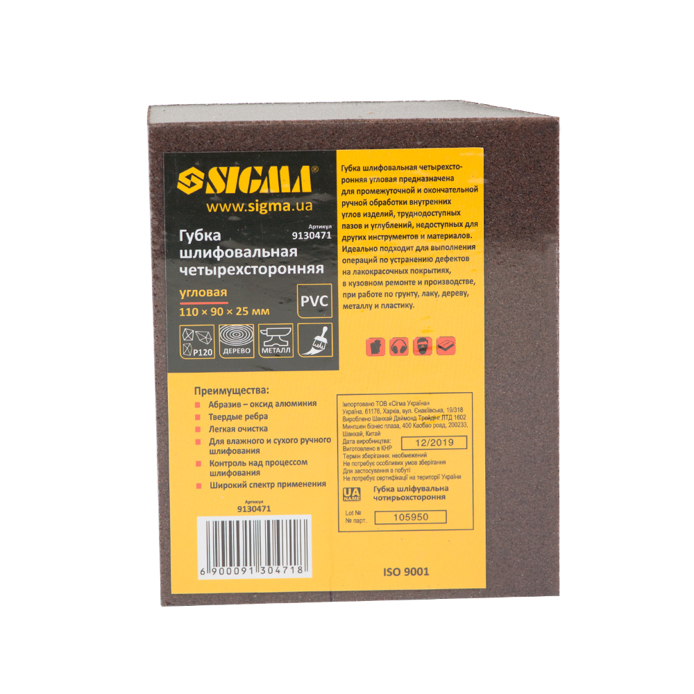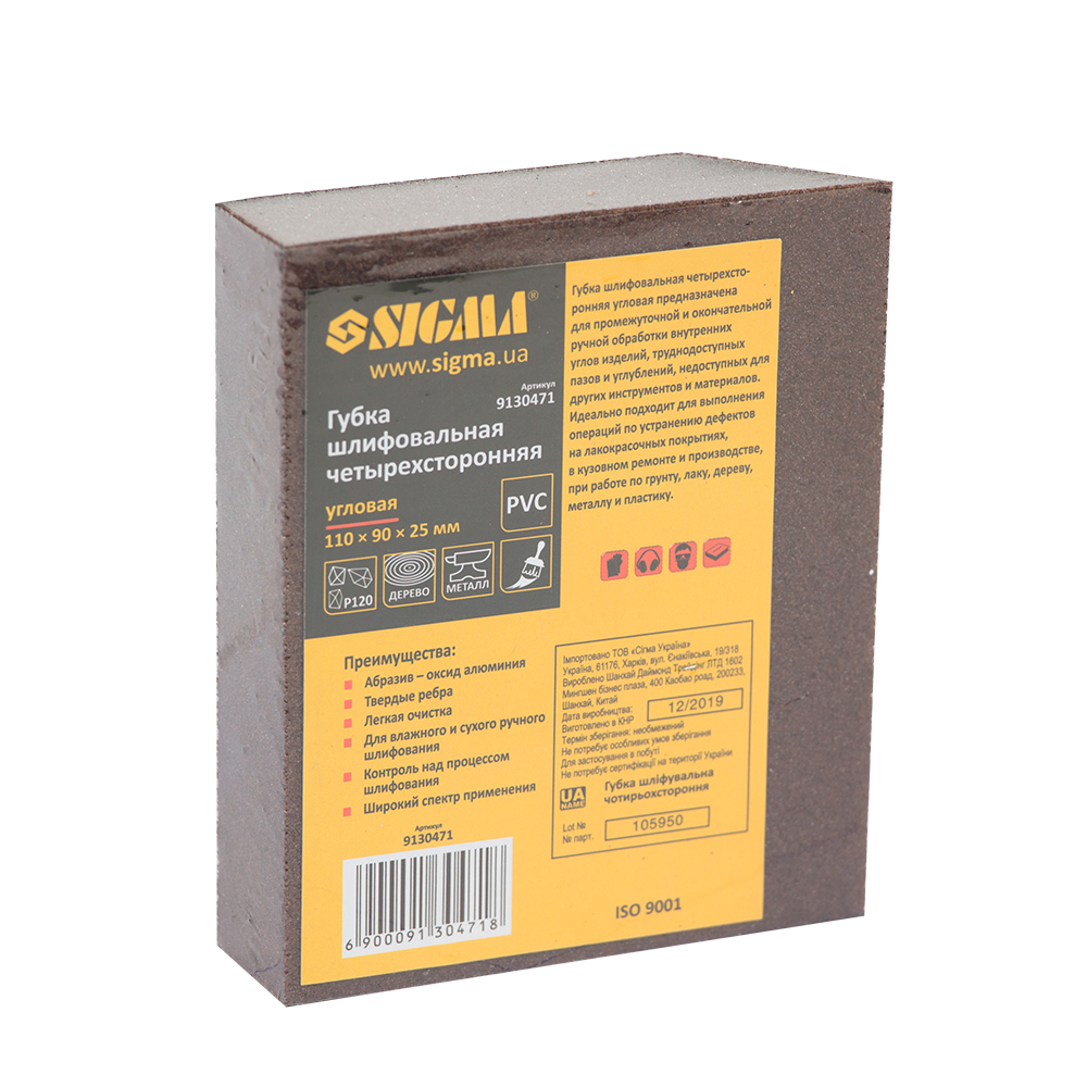 Губка шліфувальна чотиристороння кутова 110×90×25мм P120 SIGMA (9130471)