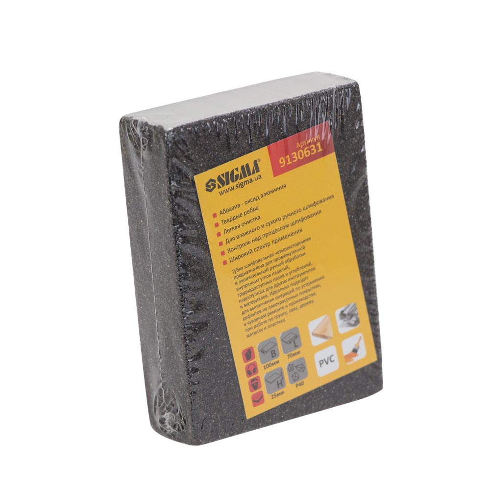 Губка шліфувальна чотиристороння 100×70×25мм P40 SIGMA (9130631)