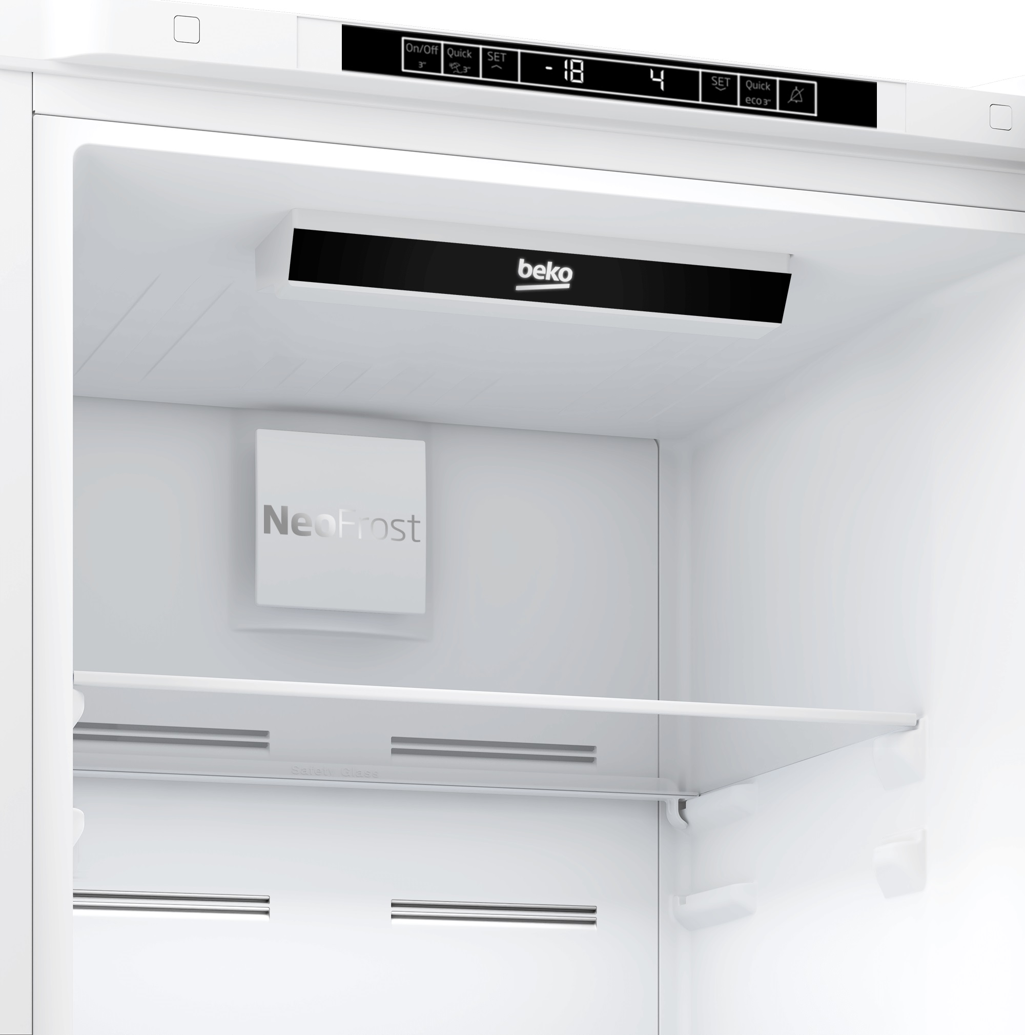 Дві окремі системи охолодження без перенесення запахів Дуже важко уникнути змішування запахів їжі, коли ви зберігаєте рибу в морозильній камері й торт із кремом у холодильній. Дві окремі системи з технологією двоконтурного охолодження NeoFrost для кожного відділення забезпечують ідеальний потік повітря й оптимальну температуру в морозильній камері та в холодильнику. Завдяки цьому їжа залишається свіжою довше, не обмерзає та не вбирає сторонні запахи. Дверцята зі зручним механізмом відкривання на 90 градусів Деякі кухні сплановано так, що на них немає вільного місця або побутова техніка розташована в незручних місцях. Дверцята SmoothFit не виступають за межі бічної панелі, коли відчинені на 90 градусів, завдяки чому холодильник можна легко поставити в кутку або біля стіни, не жертвуючи зручністю. Контейнери для фруктів і овочів при цьому висуваються повністю. Додаткова економія електроенергії Збираючись у відпустку, дозвольте відпочити і своєму холодильнику. У режимі відпустки вимикається холодильна камера, але залишається ввімкненою морозильна. Тож заморожені продукти чудово зберігаються, а ви заощаджуєте на електроенергії. Довше зберігання м’яса, риби та молочних продуктів Щоб м’ясо, риба й молочні продукти довше залишалися свіжими, потрібна нижча температура зберігання. У відділенні CoolRoom підтримуються оптимальна вологість і температура трохи вище рівня замерзання, завдяки чому їжа залишається свіжою та запашною вдвічі довше. Дверцята зі змінним напрямком відкривання залежно від дизайну кухні На деяких кухнях дверцята холодильника мають відчинятися лише в певному напрямку. З перенавішуваними дверцятами ви зможете встановити петлі зліва чи справа та самостійно вирішити, у яку сторону відчинятиметься холодильник. Крім того, ви можете поставити два холодильники поряд і встановити петлі так, щоб дверцята в них відчинялися в протилежних напрямках. Міцні скляні полиці Завдяки полицям із загартованого скла вам не доведеться хвилюватися щоразу, коли ви ставите в холодильник велику та важку каструлю. Ці полиці вироблені із загартованого скла й витримують навантаження до 25 кг. Вони захищені від тріщин і подряпин набагато краще за звичайне скло, тому ви зможете без проблем зберігати на них важкі предмети.