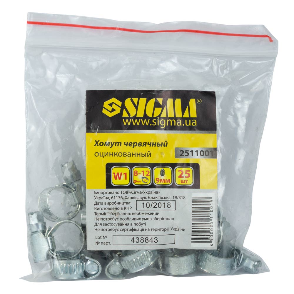 Хомут черв'ячний оцинкований 9мм D8-12мм 25шт SIGMA (2511001)