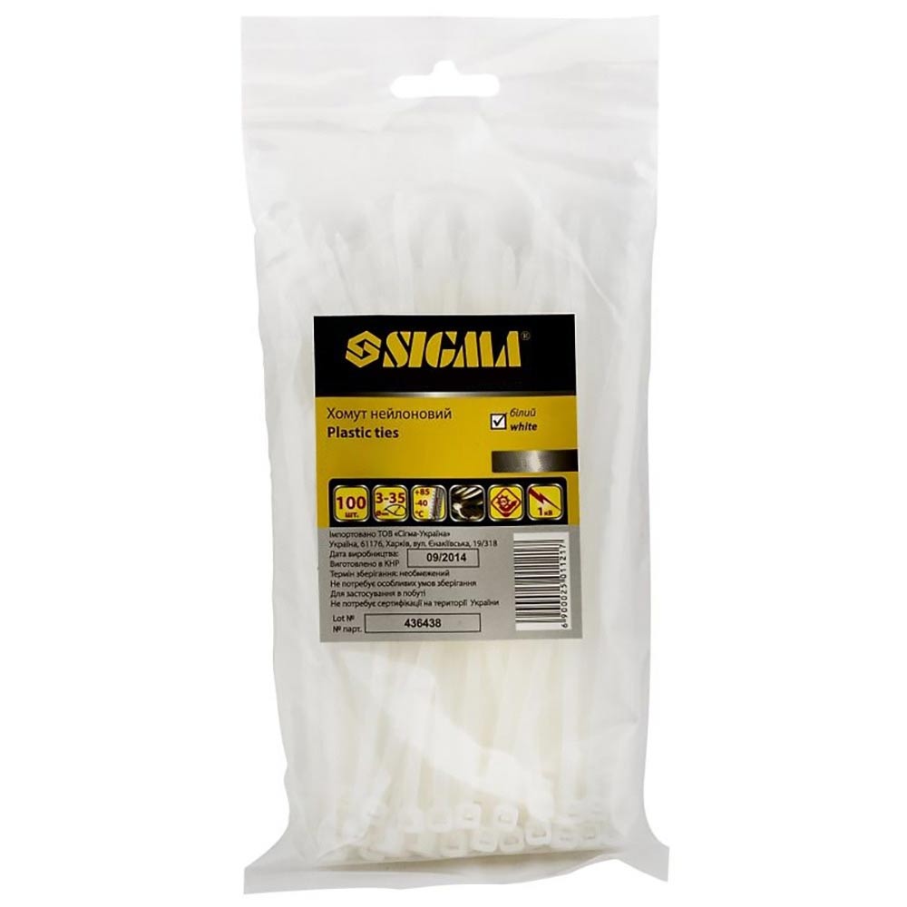 Хомут нейлон 2.5×200мм 100шт (білий) SIGMA (2501061)