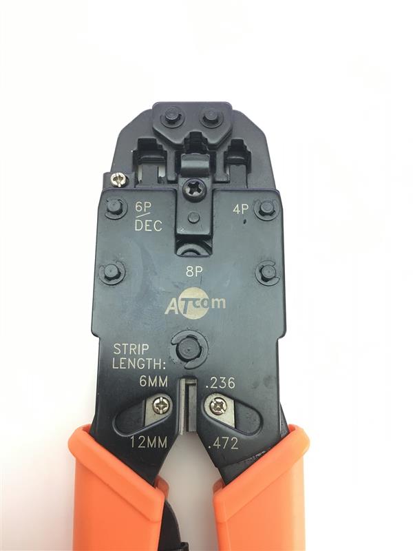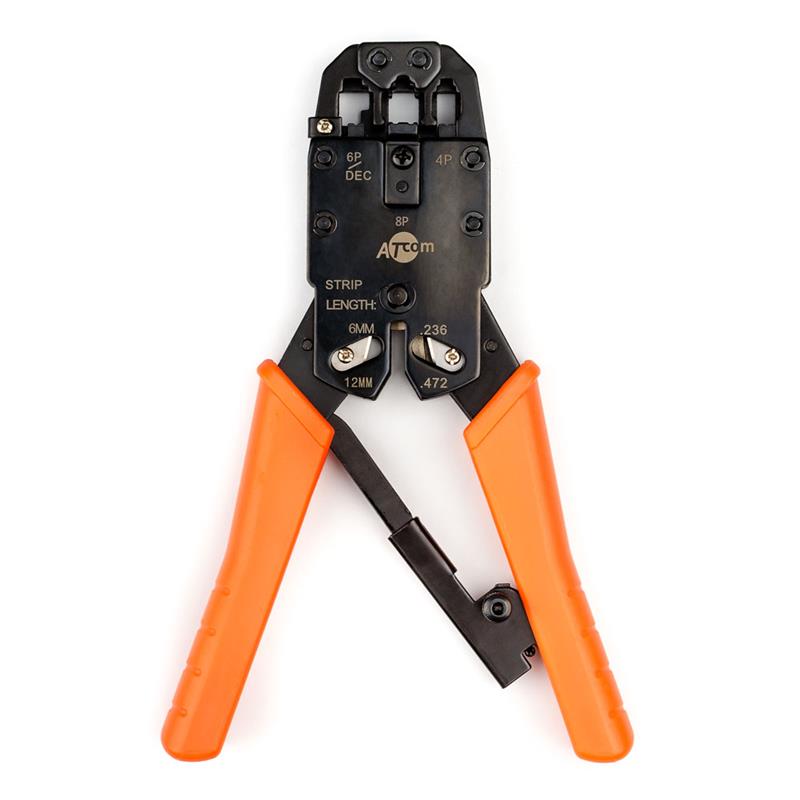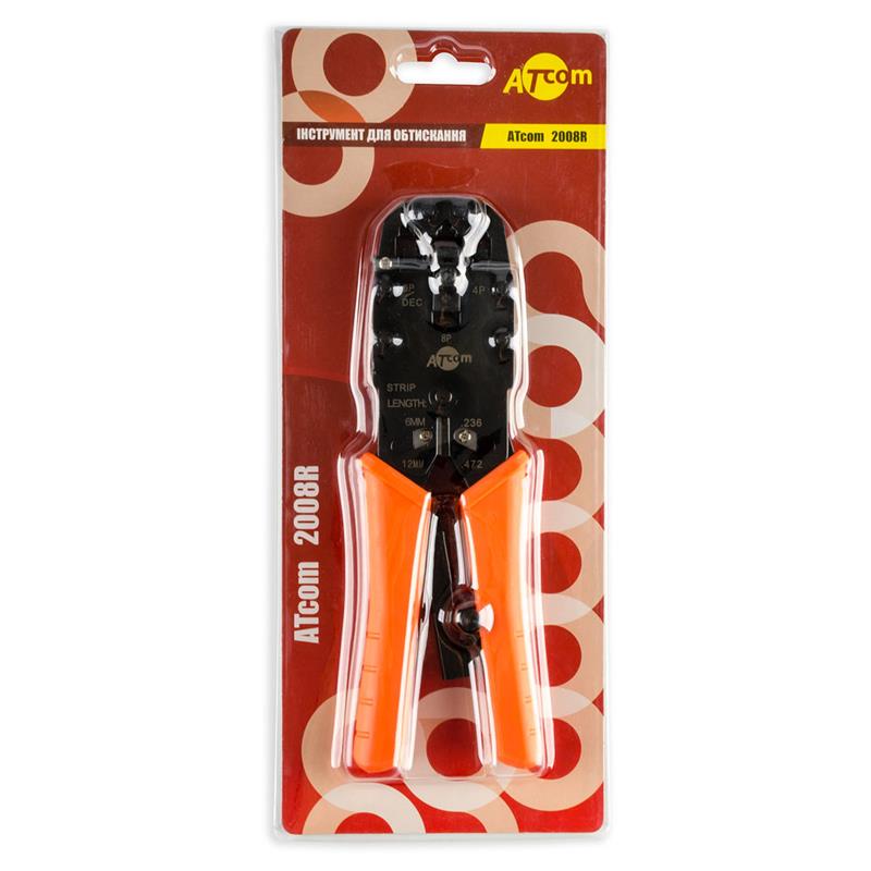 Багатофункціональний професійний обтискний інструмент ATcom 2008R, з різаком та зачищенням ізоляції. Обтиск: 8P8C-RJ45; 6P6C-RJ12; 6P4C-RJ11; 4P4C; 4P2C; & 6P6C-DEC; та екранованих 8P8C-RJ45 модульних виделок.
