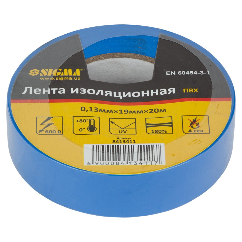 Ізолента ПВХ (синя) 0,13мм×19мм×20м Sigma (8413411) - м'яка ПВХ-плівка з матовою обробкою застосовується в побуті та на виробництві як ізоляційний матеріал для проводів і кабелів, при ремонті та зрощуванні електрокабелів з неметалевими оболонками. для монтажу, кріплення, фіксації інших матеріалів. Полівінілхлоридний пластикат із нанесенням на один бік липкого шару на основі перхлорвінілової смоли.