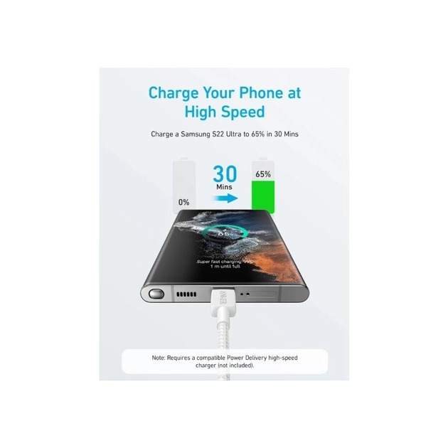Кабель Anker 322 USB-C - USB-C, 1.8 м, White (A81F6H21)