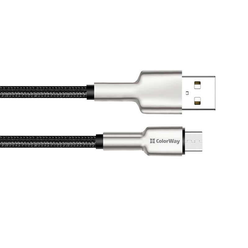 Кабель ColorWay USB-microUSB, head metal, 2.4А, 1м, Black (CW-CBUM046-BK)
