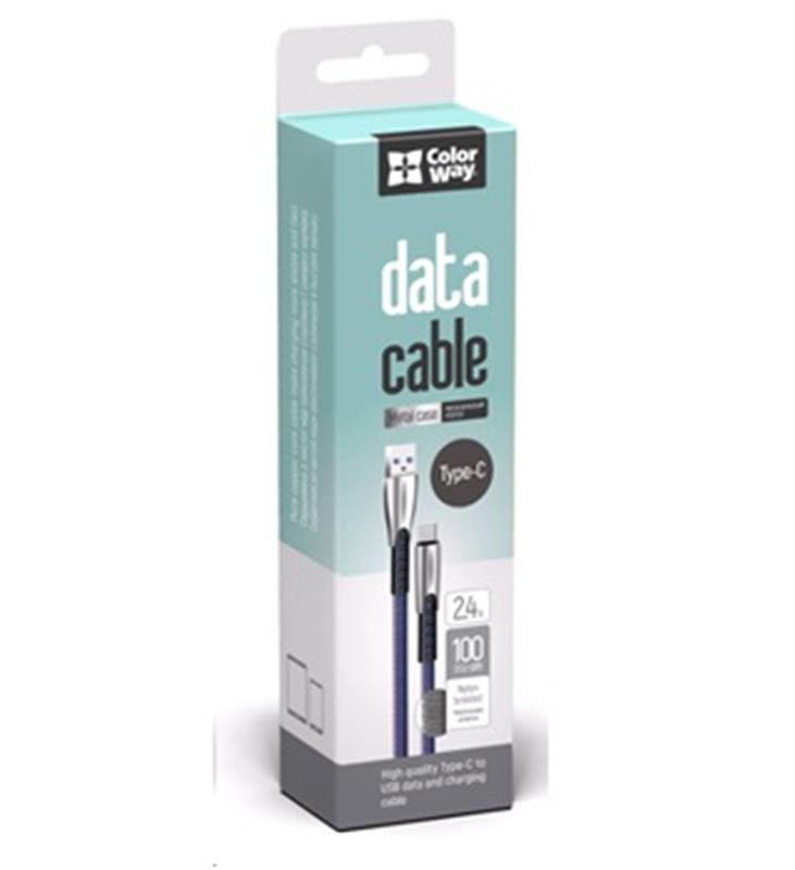 Кабель ColorWay USB-USB Type-C, 2.4А, 1м, Blue (CW-CBUC012-BL)