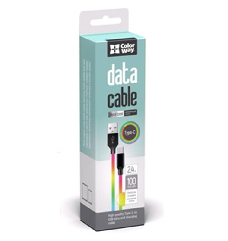 Кабель ColorWay USB-USB Type-C, 2.4А, 1м, Multicolor (CW-CBUC018-MC)