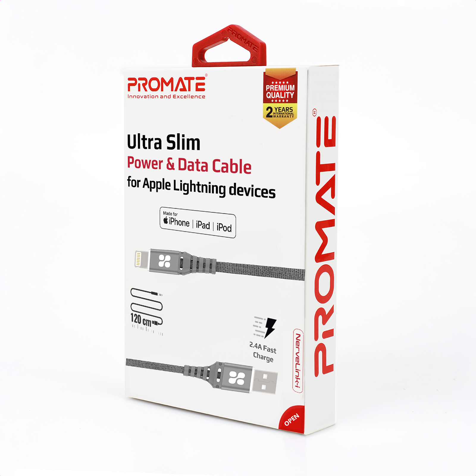 Кабель Promate USB - Lightning (M/M), 2.4 A, 1.2 м, NerveLink-i Grey (nervelink-i.grey)