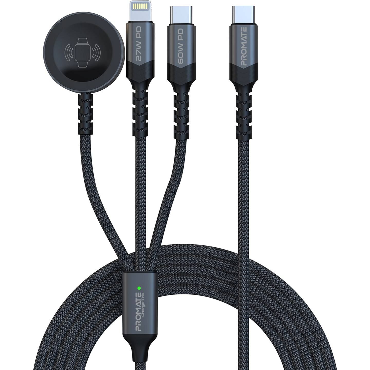 Кабель Promate USB Type-C - USB Type-C (M/M) Lightning 27W 60W Apple MagSafe 1 2.5W, 4A, 1.5 м, Black (icharge-trio.black)