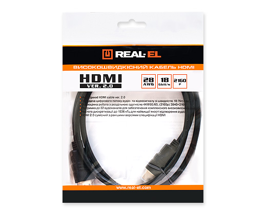 Кабель REAL-EL (EL123500011) HDMI-HDMI M/M v2.0 1м