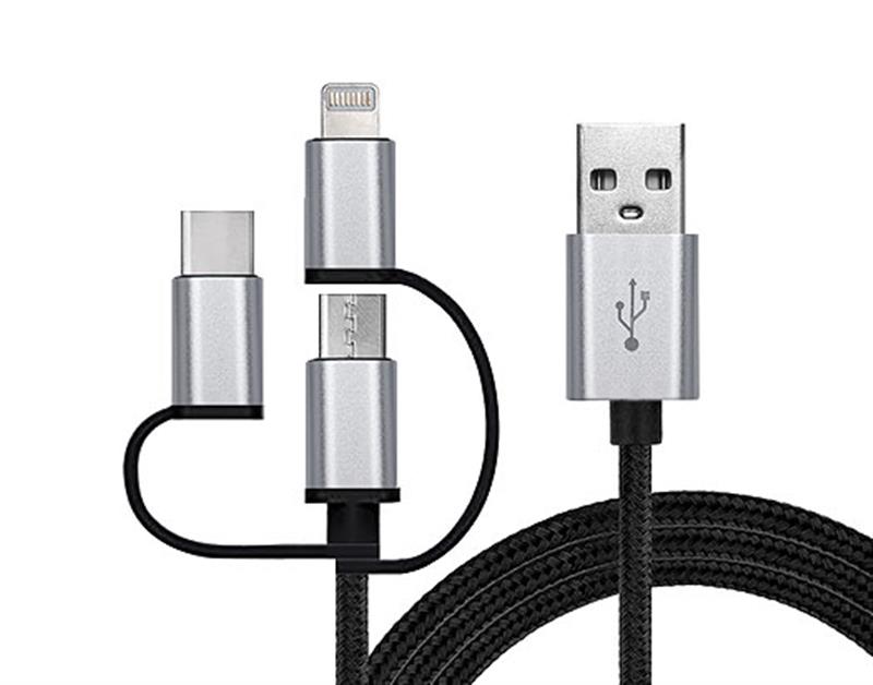 Кабель REAL-EL Premium USB2.0 AM-3in1 Lightning/microUSB/USB-C 1m, чорний