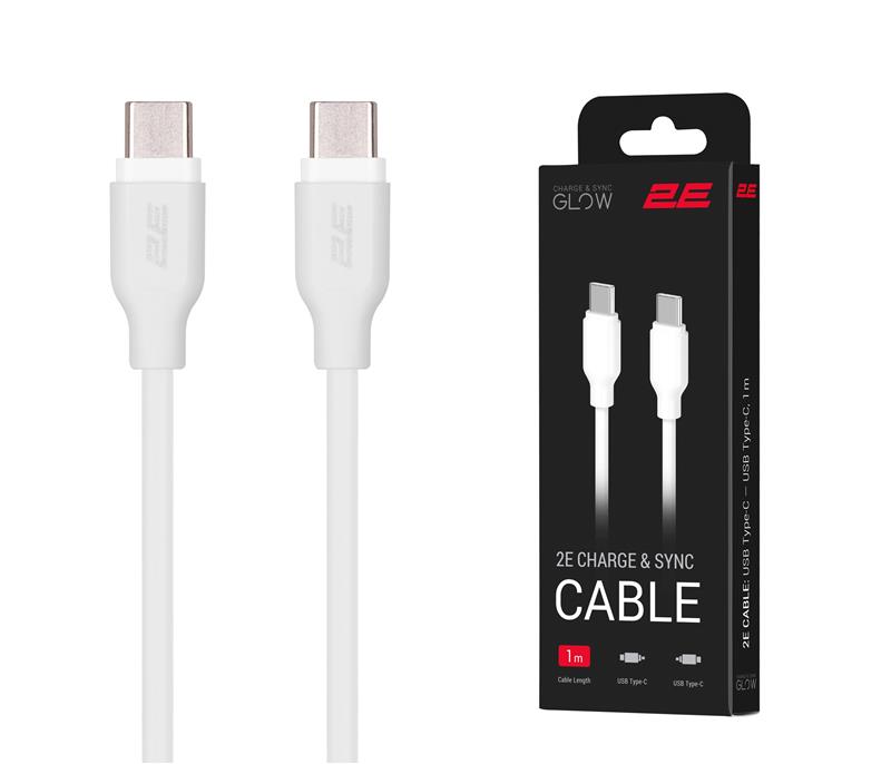 Кабель USB-C > USB-C заряджання/синхронізації 2E 1м, 60Вт Type-C, Glow, білий