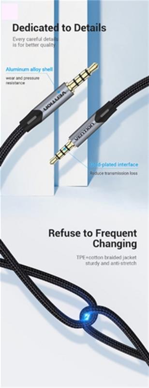 Аудіокабель Vention TRRS Audio 3,5 мм — якісний і незамінний аксесуар для власників пристроїв, обладнаних популярним роз'ємом 3,5 мм mini-jack. Завдяки його популярності та широкому застосуванню, цей кабель сумісний із величезною кількістю пристроїв: від смартфонів до автомагнітол. Його литий конектор спеціальної форми й еластичний TPE-матеріал забезпечують тривалу експлуатацію, а дріт, виготовлений з безкисневої міді, сприяє передаванню високої якості звуку.