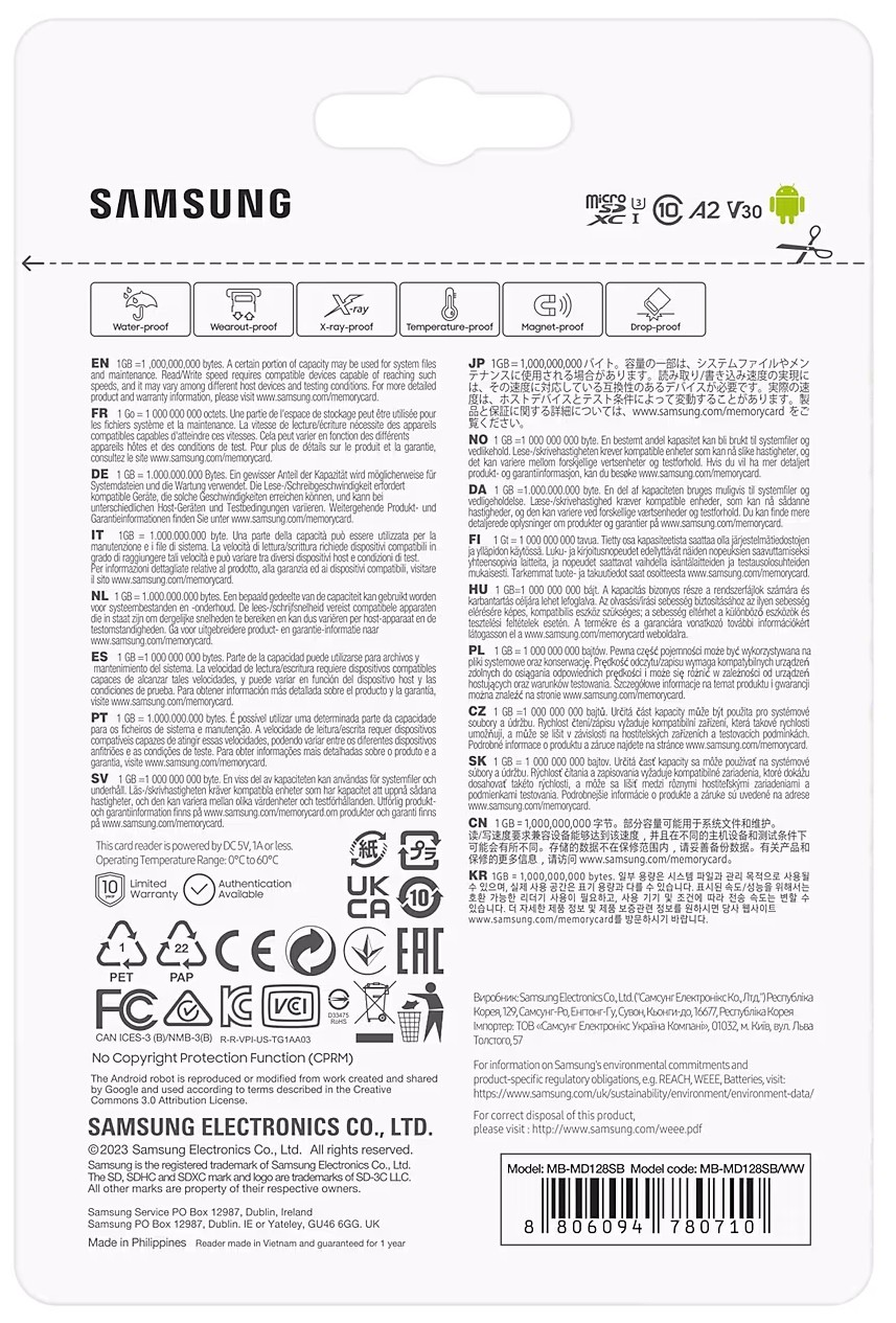 Карта пам`яті MicroSDXC 128GB UHS-I/U3 Samsung Pro Plus R180/W130MB/s + OTG Card reader (MB-MD128SB/WW)
